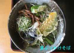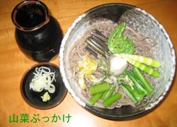 ざるそば、季節の天ぷら、山菜小鉢(2品)+どぶろく